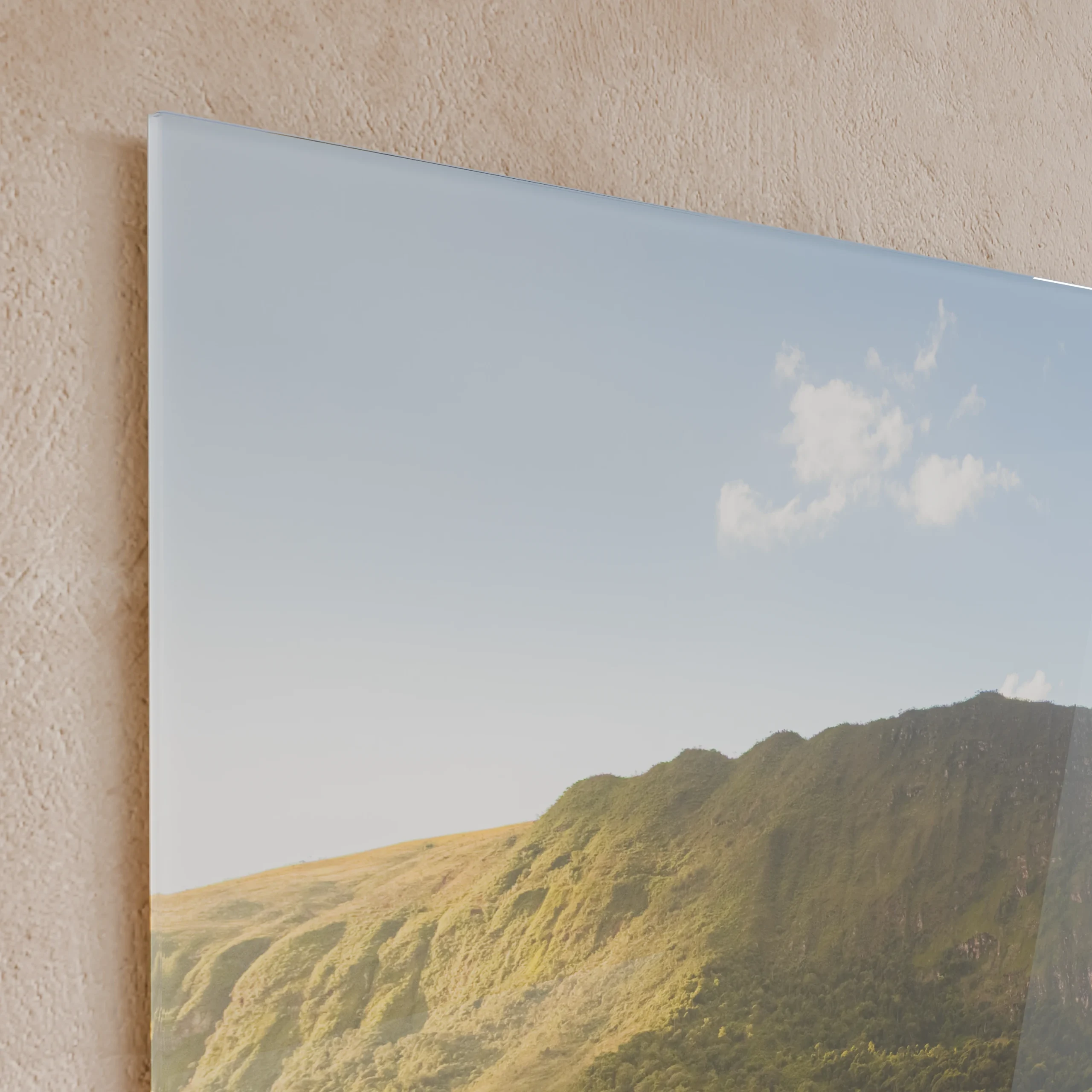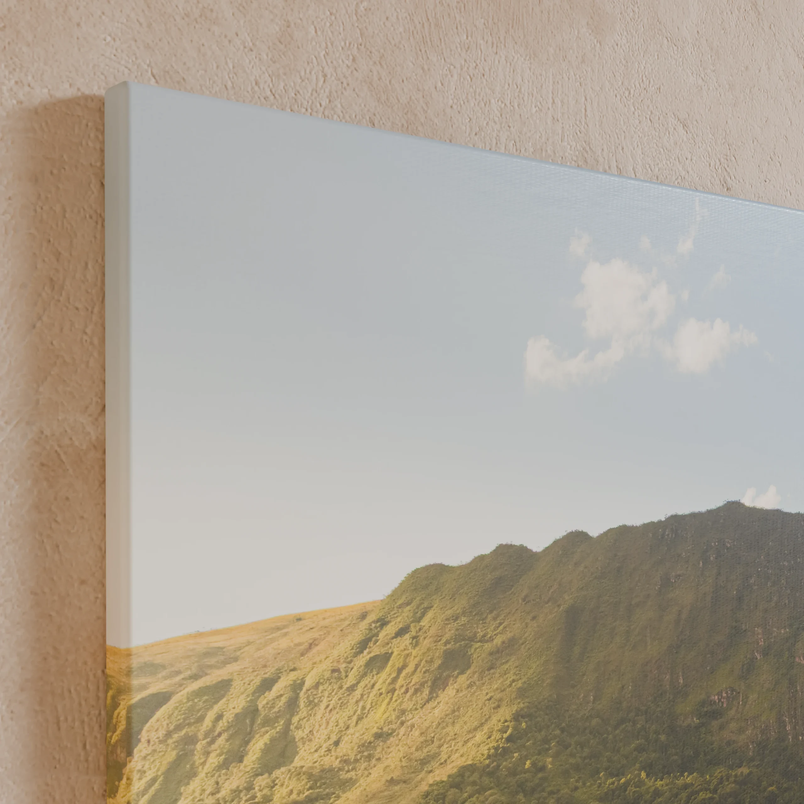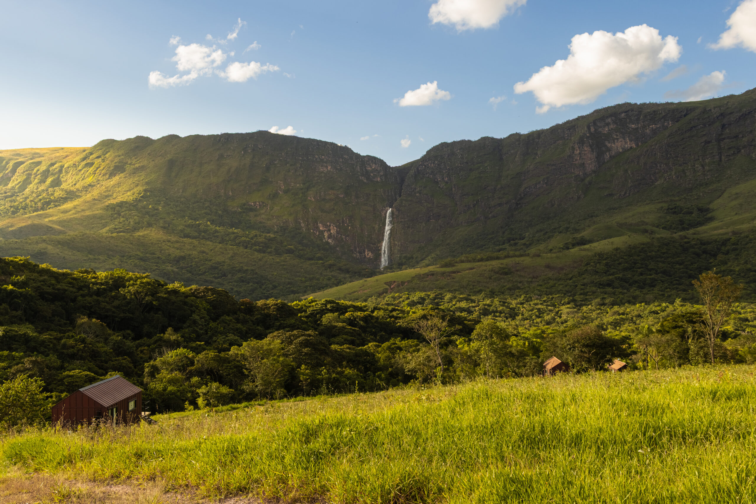 Dieses Bild entstand im Nationalpark Serra da Canastra in Brasilien, mit Blick auf die Cachoeira Casca d’Anta, einen der markantesten Wasserfälle der Region. Eingebettet in eine weite, sattgrüne Hügellandschaft stürzt das Wasser aus großer Höhe in die Tiefe und setzt einen kraftvollen Akzent in der sonst ruhigen, offenen Umgebung. Sanftes Tageslicht liegt über der Landschaft, während der helle Himmel der Szene Leichtigkeit und Weite verleiht. Fluxo beschreibt dieses Bild in einem Wort, brasilianisch für “Fluss/Kraft/Alles in Bewegung.