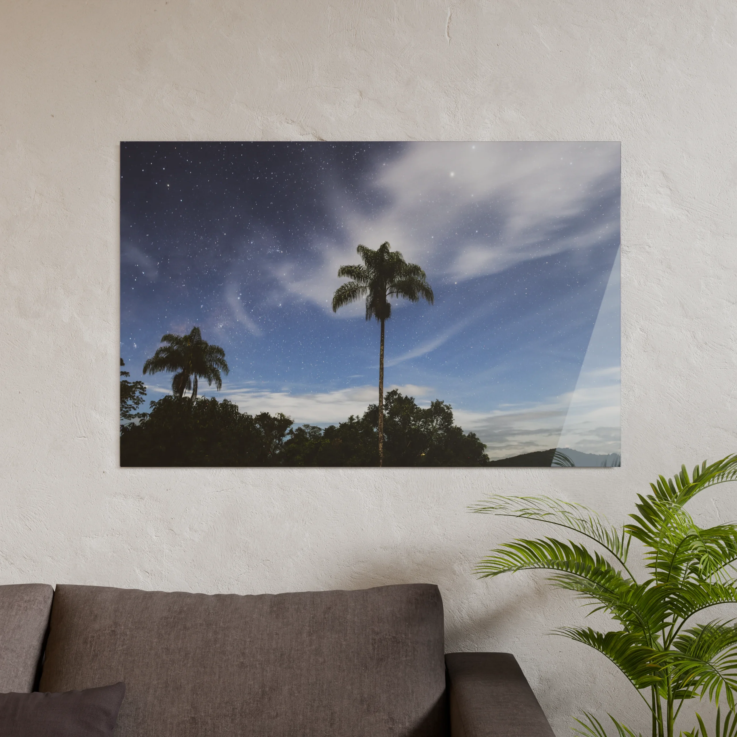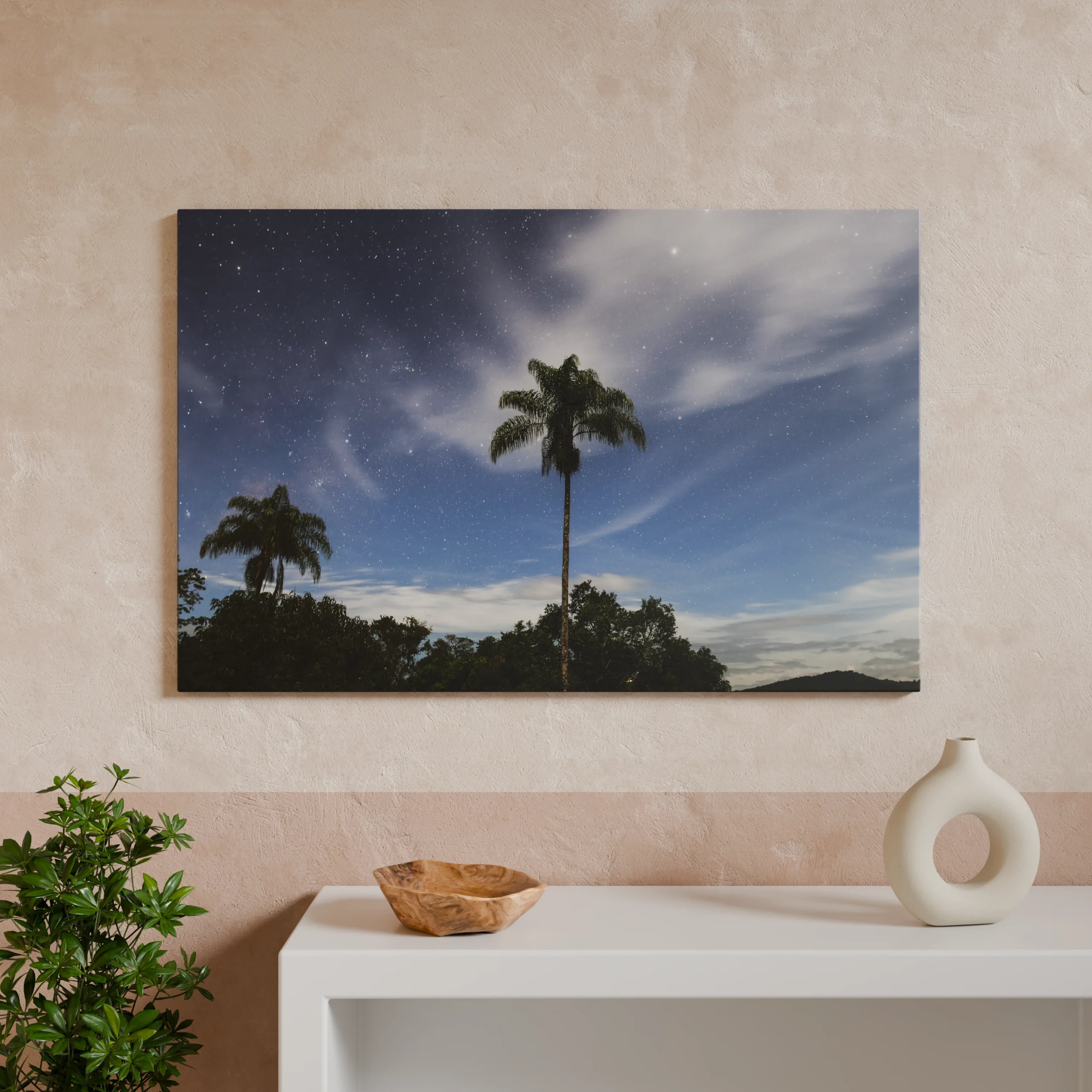 Ein Werk für Räume, die Ruhe und Kontemplation zulassen. Ideal für Rückzugsorte, Schlafzimmer oder Orte des Innehaltens – dieses Bild bringt die leise, ursprüngliche Atmosphäre einer brasilianischen Nacht an die Wand.