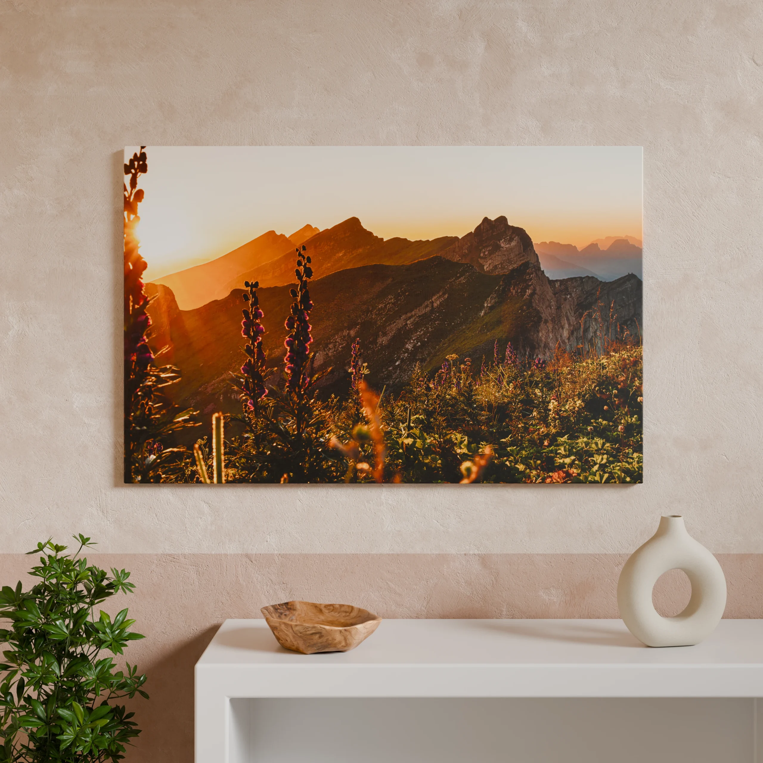 Ein Bild für Räume, die Ruhe und Weite ausstrahlen sollen. Ob Wohnraum, Rückzugsort oder Arbeitsumgebung – dieses Werk bringt die stille Kraft eines alpinen Morgens und die Freiheit der Schweizer Berge an die Wand.