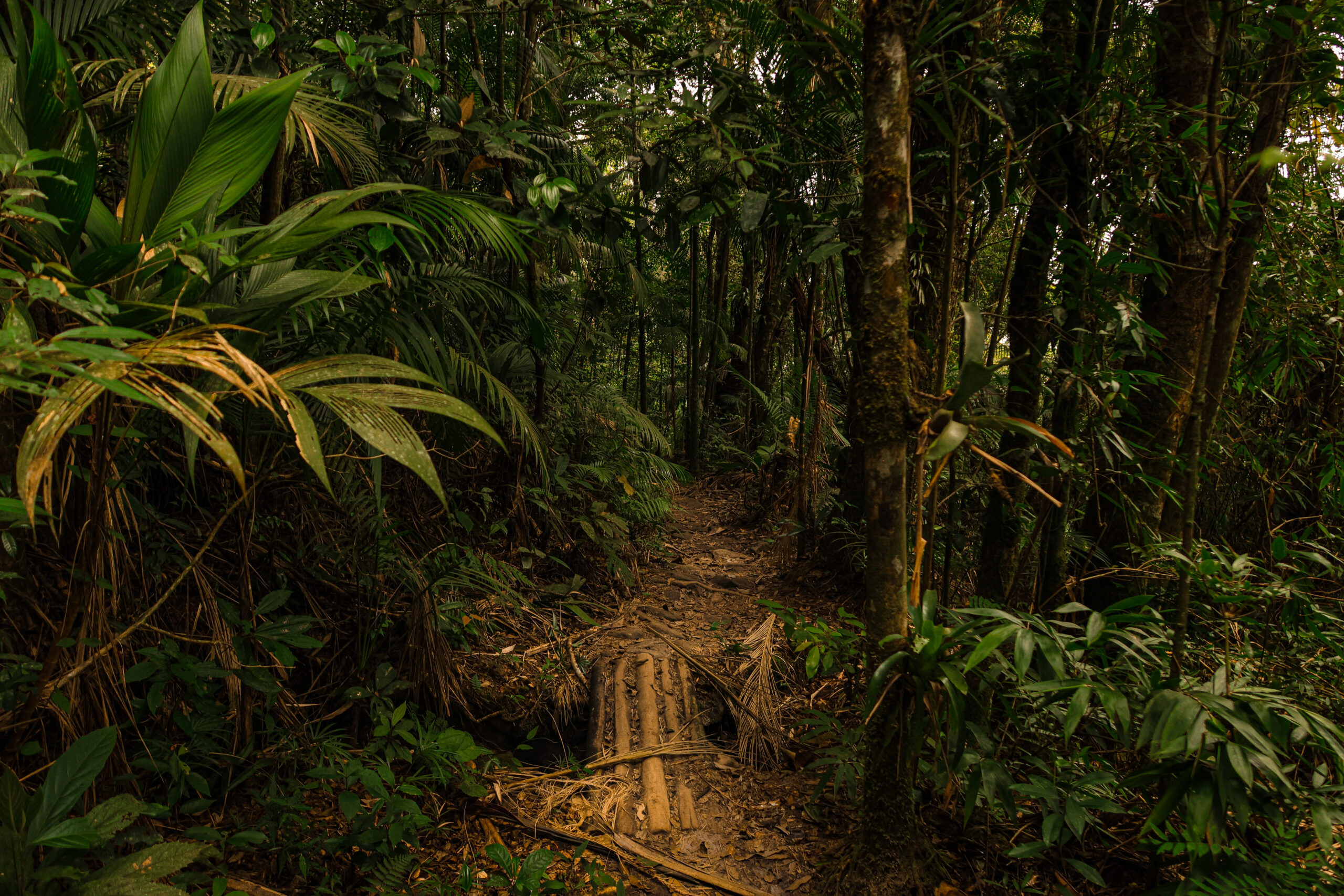 Aufgenommen bei einer Tageswanderung nahe Teresópolis in Brasilien, auf dem Weg zum Mirante Mozart. Mitten im dichten Dschungel öffnet sich ein schmaler Pfad, eingerahmt von üppigem Grün, hohen Bäumen und wild wuchernden Pflanzen. Das Licht fällt gefiltert durch das Blätterdach und verleiht der Szene eine ruhige, fast geheimnisvolle Atmosphäre. Verde offenbart die Lebendigkeit und Tiefe der Natur – portugiesisch für „Grün“ –, das üppige Blattwerk, die sanften Lichtspiele und die stille Kraft des Waldes spürbar macht.